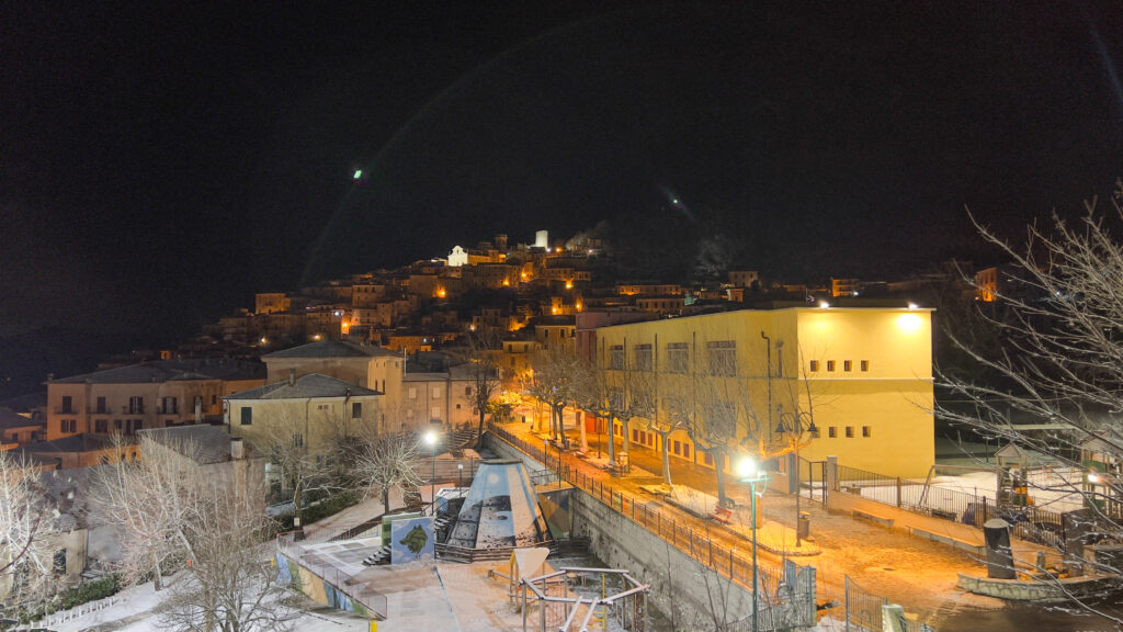 Situato nel cuore del Parco Nazionale d’Abruzzo, Lazio e Molise, San Donato Val di Comino è un borgo medievale che, durante la stagione invernale, si trasforma in un luogo di rara bellezza. Le sue stradine acciottolate, le case in pietra e le chiese storiche si vestono di un manto nevoso, creando un’atmosfera fiabesca che incanta visitatori di ogni età.