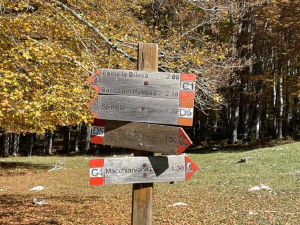 Il sentiero culmina a Forca d’Acero, uno dei valichi più suggestivi del Parco Nazionale d’Abruzzo, Lazio e Molise. Situato a un’altitudine di circa 1.538 metri, Forca d’Acero segna il confine tra Lazio e Abruzzo e offre un panorama mozzafiato sulle montagne circostanti. Questo luogo è una tappa importante per gli escursionisti che vogliono immergersi nella bellezza selvaggia del parco e ammirare il paesaggio che si apre davanti a loro.