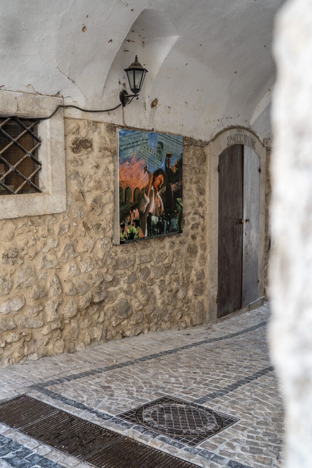 Nel cuore di San Donato Val di Comino, sotto il caratteristico “spuort'” dell’Antico Municipio di Via Orologio, si trova un’opera d’arte che racconta un pezzo fondamentale della storia locale. Questo passaggio, noto come sottopassaggio, ospita un pannello commemorativo creato dall’artista Luciano Tocci in occasione del cinquantenario dello Sciopero a Rovescio (1951-2001).