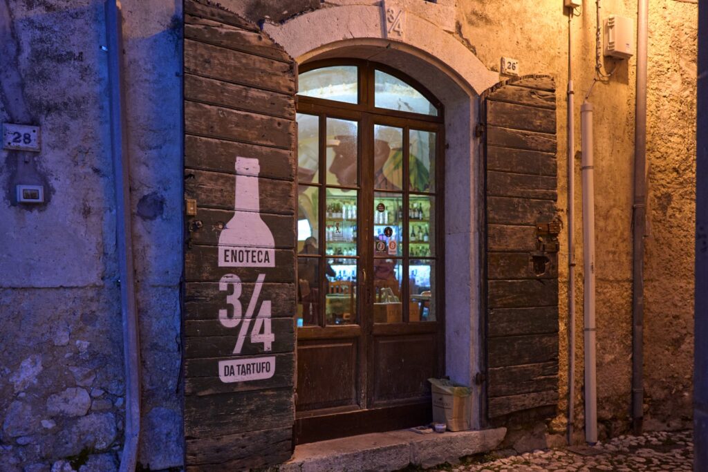 Per chi cerca un luogo dove il vino è protagonista e l’attenzione al dettaglio fa la differenza, l’Enoteca 3/4 è una tappa obbligata. Lasciati trasportare dall’atmosfera magica dei vicoli di San Donato Val di Comino e concediti una serata senza pensieri, all’insegna del buon cibo e del buon vino.