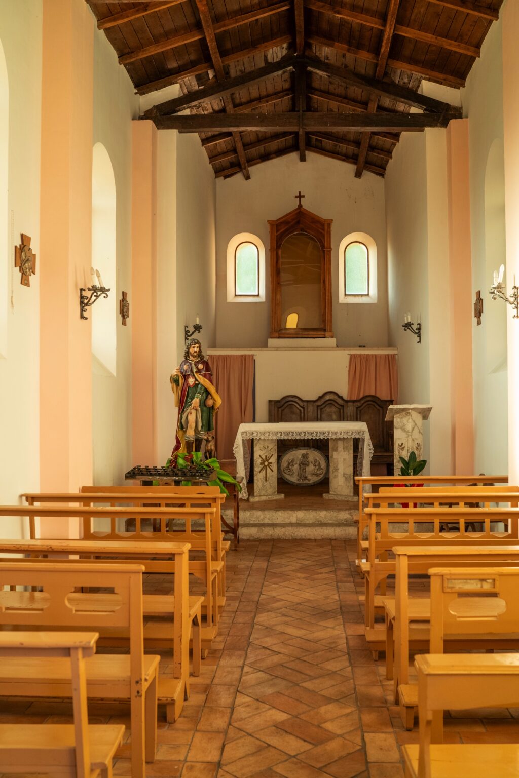 Another valuable testimony on the history of the Church of San Rocco is provided to us by the Visit of Bishop Matteo Gagliani in 1698. On this occasion, the church is described as being located "outside the walls" of the village. This geographical location allows us to imagine the church as a place of welcome for wayfarers and pilgrims, a reference point for those who found themselves passing through San Donato Val di Comino.