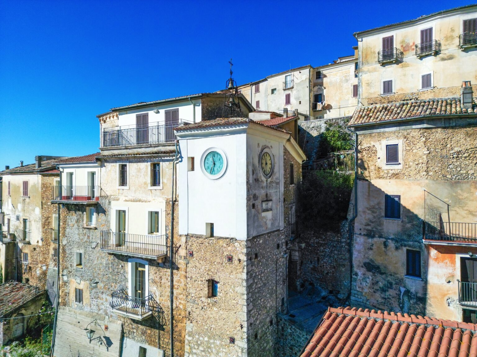Como la población creció en la Edad Media y las viviendas del pueblo ya no eran suficientes para las necesidades de la población, se decidió construir nuevas casas más allá de las murallas. Para defender las nuevas viviendas, se levantaron nuevas murallas defensivas. El desarrollo de los muros recuerda el de los anillos anuales de los árboles. Este método de construcción es típico de la arquitectura militar de los pueblos de montaña, sobre todo en los Apeninos.