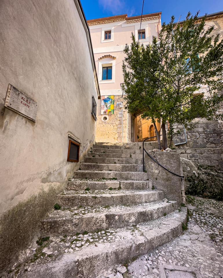 A aldeia medieval de San Donato Val di Comino caracteriza-se por uma densa rede de escadas, degraus e terraรงos que serpenteiam pelo sistema viรกrio histรณrico. Entre estas, destaca-se a Scala Santa (Escada Santa), situada na Piazza Colle e diretamente ligada ร Porta Castello, a partir da qual os peregrinos podiam chegar ao Santuรกrio de San Donato. Esta escadaria deve o seu nome ร tradiรงรฃo: era pisada no dia 6 de agosto pelos devotos que vinham a pรฉ de toda a regiรฃo e de fora dela para prestar homenagem a San Donato, o santo padroeiro da cidade.